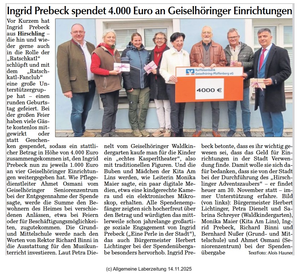 Spende an Geiselhöringer Einrichtungen