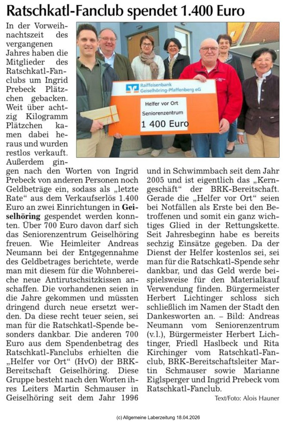 An HvO und Seniorenzentrum gespendet